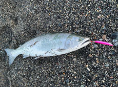 驚きながらも慎重に寄せて53cm、2.5kgのサクラマスをゲット!