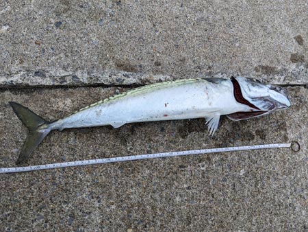 今年は初夏からサイズが大きいですね!サバの引きは強烈なので、このサイズが釣れると楽しいですね〜♪仕事帰りでも楽しめるのがうれしいですね!