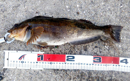 4インチのシャッドテール系ワームでスイミングで2本、リフト&フォールで2本 この日は2時間弱の釣行で4本のアブラコ(アイナメ)をヒットしたそうです。