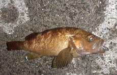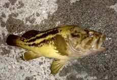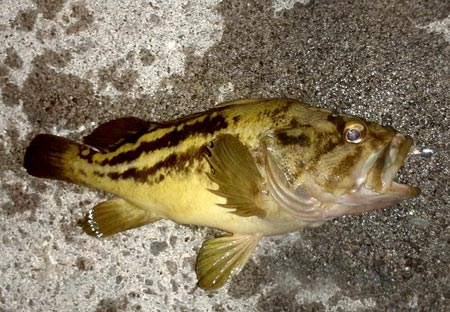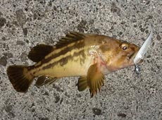 引き続きガヤと戯れていると、今日一番の魚がヒット! ヒットと同時にドラグが出されるほどの強いファイト! 根擦れに注意しながら浮かせたのは35cmの良型シマゾイ! この1匹で満足し終了しました。