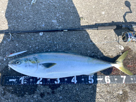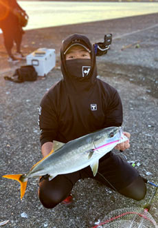 まなとさんは、沖堤に上がってまもなく朝一番に朝まずめタイムに1本釣り上げました。