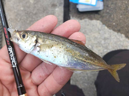 海峡方面の漁港でデイアジングを楽しんで来ました! 比較的水深の浅い漁港で水中を覗くとサバの姿があり、遊ぼうと思ってタックルを準備していたらサバとは別の魚の群れが!しかも茶色い背中!これはアジだと思い、アジングタックルに持ち替えすぐさまキャスト。