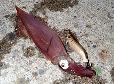 「今日はマイカも混じってますよ」と言うBマサさんはすでに10杯以上の釣果!その中にはヤリイカとマイカの姿が!