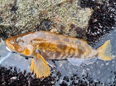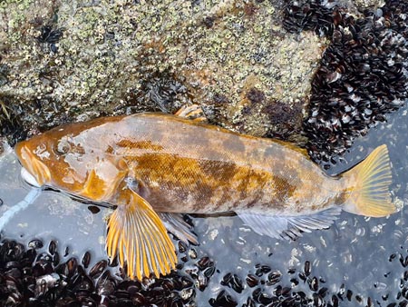 まだ魚が居そうな雰囲気があったので少しポイントを休ませてから再びアプローチすると再びヒット! 重量感から良型と確信。 慎重にやり取りしキャッチしたのは50cmアップのメスのアブラコ(アイナメ)!