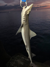 この日は朝3:30から釣りを開始した黒田さん!ワームで広範囲に誘ってくるも反応が無い時間が続き、シンキングペンシルに変えて遠投。ジャークさせながら誘って来ると、いい感じのバイトで魚がヒット!「これは良いヒラメかも!」と期待をしましたが・・・上がってきたのはサメ(;^_^A