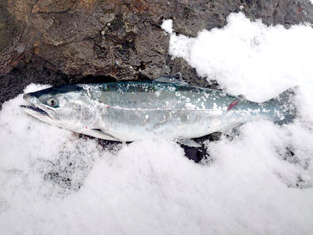 朝一ならぬ朝二くらいの時間から釣りをスタートした安藤さん。しばらく反応が無いまま時間が筋ていきましたが、目の前でモジりが発生!すかさずルアーをキャストすると即反応!再度キャストしなおすと待望の今季初サクラがヒット! その後も奥様のルアーにチェイスがあったり、モジりがみえたりもしましたが、ヒットまでは至らず・・・この日は終了となったそうです。
