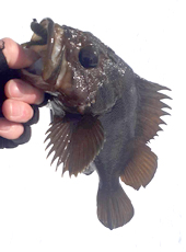 その後、同サイズのアブラコ(アイナメ)を惜しくも水面でバラしたところであっという間に時合いが終了。 アブラコ(アイナメ)の反応が無くなりましたが、シマゾイ&ガヤのヒットが続き終了しました。