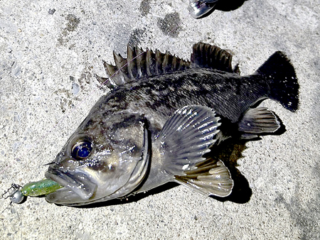 2月24日(金)、少し風があったので、いつもより少し重めの3.5gのジグヘッドでスタートした鈴木さん。 ボトムから50センチくらい上を泳がせるイメージでミドストで誘ってくると、クロソイ、ガヤ、ホッケが連発!! 合わせて15匹以上の魚をゲットしたとの事。