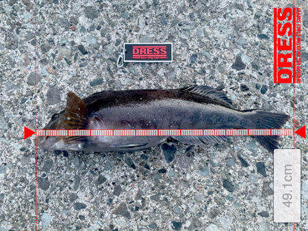 この日は夕方から2時間程度の釣行でアブラコがコンスタントにヒット。 7gのフリーリグに甲殻類系のワームでサイズアップを狙っていたところ、大きな当たりがあり、水深10m程度しかないポイントで丸々太ったマゾイが釣れたとの事。 ショアからのちょい投げで、始めて良型のマゾイが釣れたとの事で写真を送っていただきました。