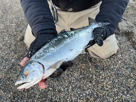 3月31日(金)津軽海峡方面のサーフでサクラマスを狙ったYさんから、釣果写真が届きました。