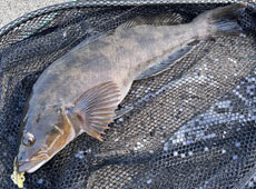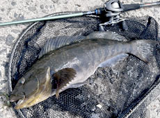 日本海の漁港で53.5cm、2,050gの大型アブラコ(アイナメ)を釣り上げた鈴木さんから釣果写真が届きました!