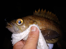 改めてロングスピンで探るとカジカがヒット!可愛いらしいツノに癒されるも気がつけば夕マズメΣ(・ω・ノ)ノ!これはマズイと5gフリーリグ+熟成アクア・バグアンツ3.3インチの茶ガニに切り替え、丁寧に探る釣りにチェンジ。