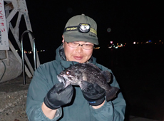 少し離れていたところで釣りをしていた甲斐さんは、静かにクロソイのヒットを重ねていており、型の良いクロソイが釣れたところで記念撮影。