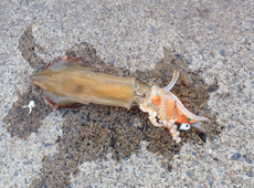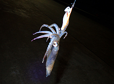 さっそく1.8号のエギでスタート。日暮れ時になり、マメイカの活性が急上昇!表層付近でコンスタントにヒットが続きました。