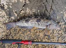 リフト&フォールから始めましたがスタックが多くテンポが悪いのでボトムを感じながらのリーリング+ジャークに切り替えると直ぐバイト!根を見つける度突っ込もうとする魚とのファイトを楽しみつつキャッチすると思っていたより小さいサイズ磯の魚の強さに驚きました!