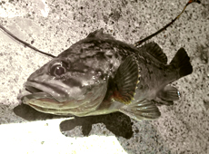 底の方に大きいサバがいないかな?と徐々にレンジを下げていくと、ヒットしたのは20後半サイズのクロソイ!ライトタックルをギュンギュンと絞り込む強烈な突っ込みに耐え、何とか浮かせて無事キャッチ! タモを準備しておいてよかったです(;^_^A