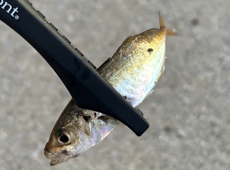ワーム+ジグヘッドのジグ単で10p前後の豆アジがヒット!