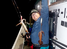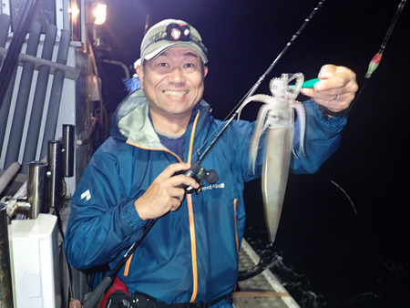 同じく初参加の菅原さんは普段は船酔いが心配とのことですがこの日は体調も良く、イカメタルゲームを満喫。