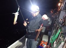 マイカ(スルメイカ)狙いのイカメタルゲームへ行ってきました。 遊漁船“長良丸”にて午後 8 時半出船。スタートからマイカ(スルメイカ)のヒットが続きました。