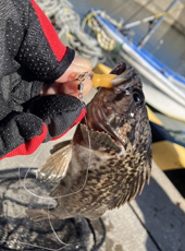 8歳の蓮華ちゃんが初めてのクロソイをゲット!ママから教えてもらった通りに投げてゆっくり巻いて2匹のクロソイをヒットさせたそうです!