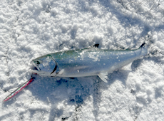 今年最初の釣りを日本海でスタートさせた佐藤さんからサクラマスの釣果写真が届きました! この日は昼近くからのんびりと釣りを開始すると、港の中でサクラマスの跳ねを見つけてメタルジグをキャストするとすぐさまにヒット! その後もルアーを追いかけるのサクラマス群れを見つけ、群れに目がけてキャストするとワンキャストワンヒットの状態になったそうです。