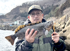 津軽海峡方面の漁港で極太なアブラコ(アイナメ)を釣り上げた椎名さんから釣果写真が届きました!