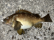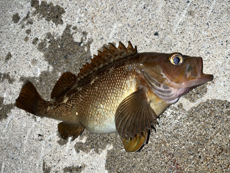 噴火湾にナイトロックに行ってきました。 一か所目でしばらく投げていると強い引きがあり、上げてみるとカジカがヒット! 一瞬、アブラコ(アイナメ)かと思うくらいの引きでした。