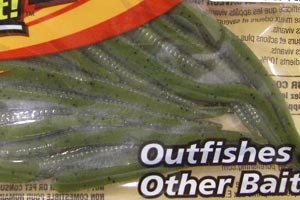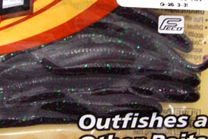 名前はクローラー(=ミミズ)ですが、バスが捕食している日本の小魚に、最も近いサイズとシェイプのワームです。実際の魚は、人間が想像するよりも扁平であることに気づいている人は案外少ないものですが、それをこのワームでは、見事に表現しました。水を掴みやすいシェイプなので、ヘッドにネイルシンカーを入れたネコリグで、底にあるエサをついばむようにアクションさせれば、数釣りでこのワームを超えるモデルはなかなかありません。